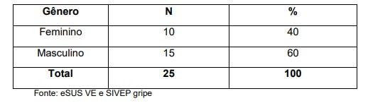 Tabela 2 - Número de casos confirmados de COVID-19 segundo gênero, Formosa Goiás, 27 de fevereiro a 25 de maio de 2020.