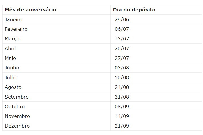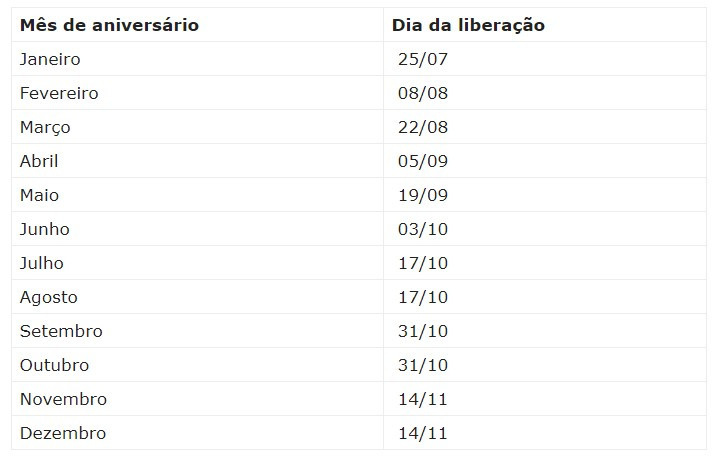Já os saques serão liberados aos sábados a partir do dia 25 de julho.