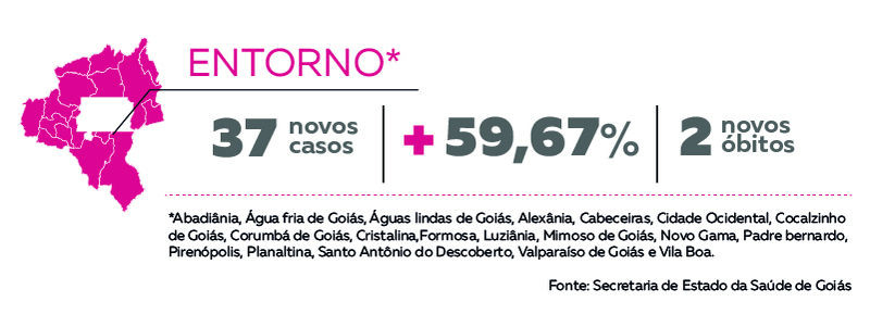 O entorno de Brasília tem sido foco de atenção das autoridades de saúde por causa do grande número de casos na capital federal. Nos 19 municípios que formam a microrregião, foram confirmados 99 casos de Covid-19, contra 62 da semana passada. Foram 37 confirmações no período, o que representa um aumento de 59,67%, um crescimento acima da média nacional. A cidade que mais registrou casos foi Valparaíso de Goiás, com 25 confirmações, 11 delas na última semana. No período, foram contabilizados dois óbitos em toda a região.
