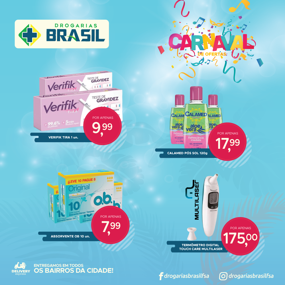 A Rede de Drogarias Brasil, preparou um carnaval de ofertas para 2020. São mais de 100 itens em promoção, venha conferir ou ligue: