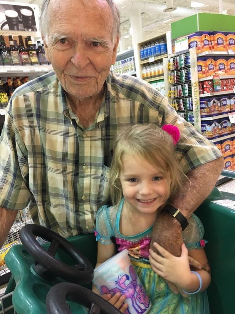 Dan Peterson, de 82 anos, conheceu a pequena Norah Wood, de 4, em um supermercado na Geórgia, Estados Unidos, por acaso. A menina ajudava a mãe, Tara Wood, com as compras quando acenou para o idoso e disse: “Oi, velhinho. Hoje é meu aniversário”. Mal ela sabia que o idoso passava por um processo de depressão.