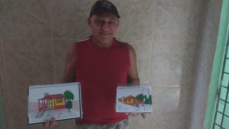 Só depois de muito tempo os pais conseguiram comprar o terreno. E foram eles próprios que construíram a casa, com a ajuda de um tio de Davidson. “É muito legal ver a casa desenhada por ele mesmo. Eu também fiquei feliz pela repercussão porque isso o incentivou, sabe? Ele ficou feliz! Então, é algo que pra mim foi muito bonito.”